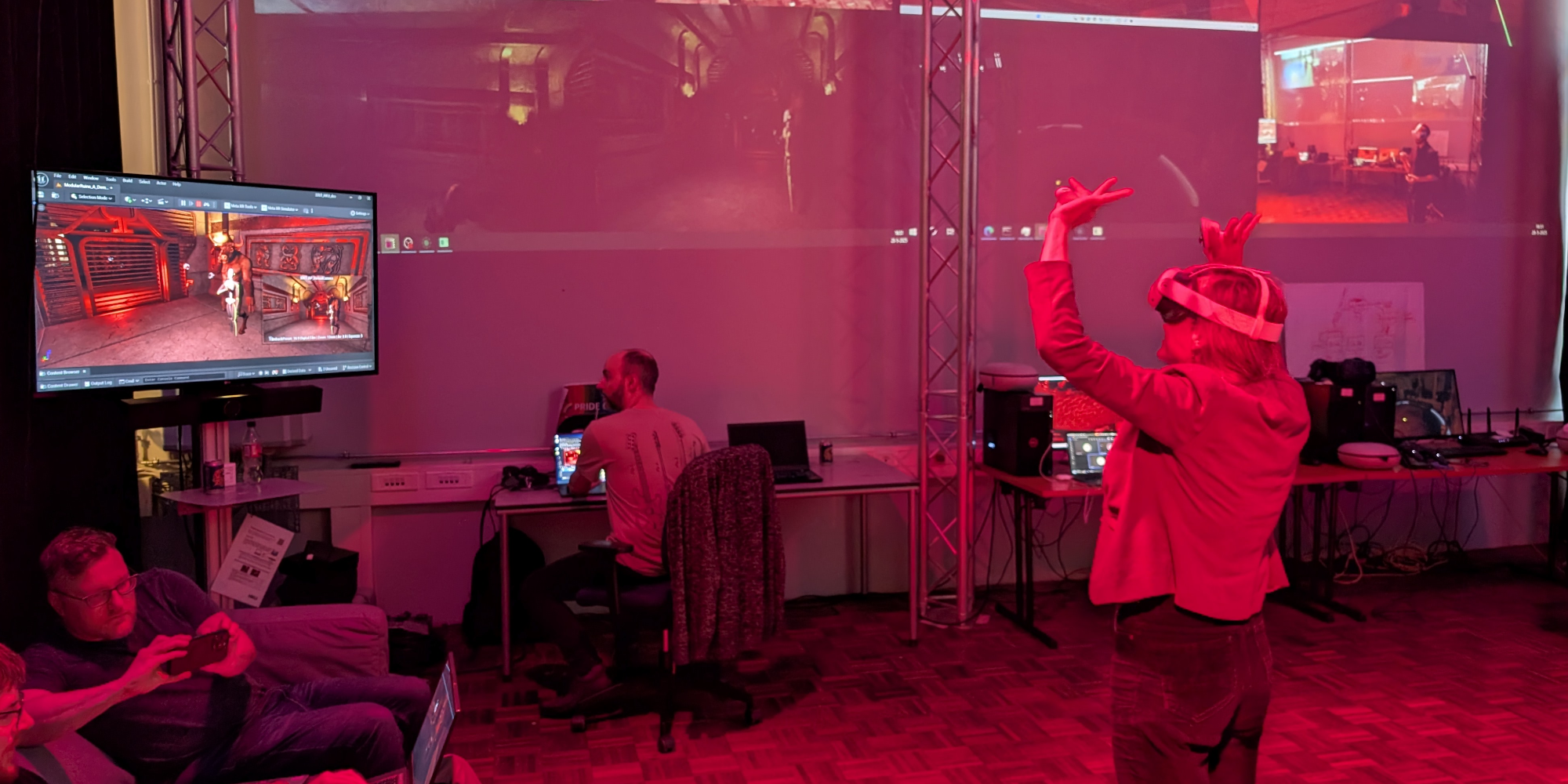 These projects combine physical spaces, networked XR platforms, and performance-driven design to prototype new forms of shared presence, where people can move, create, and experience together even when apart. Our setups often involve integrated technologies like real-time 3D engines, motion tracking, multi-user VR environments, and theatrical tools like lighting and spatial sound.